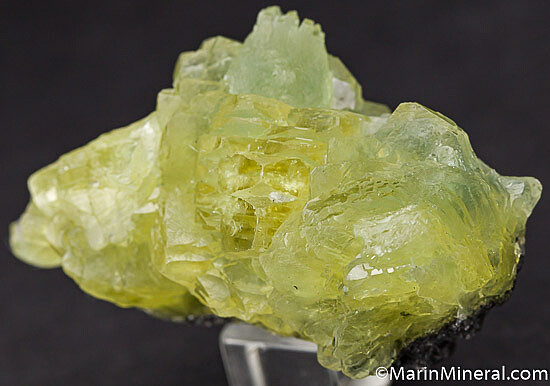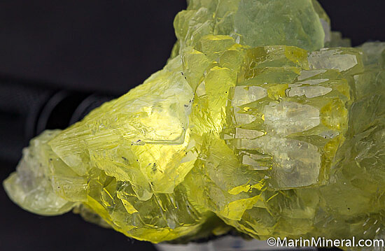 Large translucent Prehnite crystals with strong lemon yellow color from recent finds at Merelani. This has large, chunky crystals typical of the recent material from Merelani, already some of the world's best Prehnite