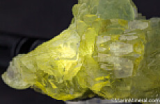 before these finds, these new ones are better than previous. This specimen is mostly solid Prehnite with some attached Graphite and has a mixture of both the pure yellow Prehnite and the more yellow/green Prehnite typical of the more recent finds. Big and showy piece valued at $250.