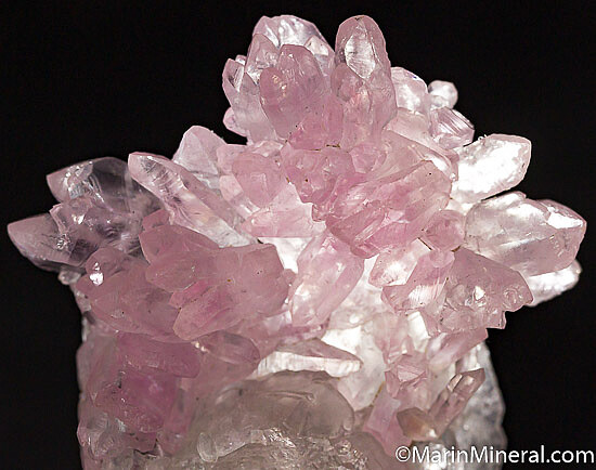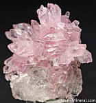 Cluster of well formed Rose Quartz crystals atop a partial white Quartz crystal. Comes with an old label showing a price of $350.