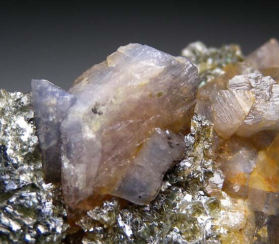 Rare blue/grey Lawsonite crystals to 1.5cm embedded in Glaucophane schist. The main crystal is sharply formed and exposed fromt he schist on both sides. This is the single best example I've had and was in my collection for 20 years. From the type locality for Lawsonite.