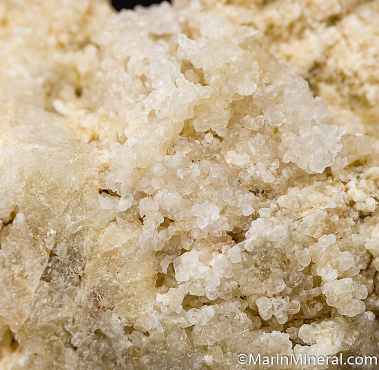 Rare colorless Grossular crystals from a small find made in 2018 near Georgetown. The specimens were found in an approximately 3 meter long lens in Serpentine that was completely mined out. These have been analyzed as nearly pure end member Grossular with the crystals occurring in bunches or on massive white Grossular. Crystals 2-3mm in size. Grossular from this find shows varying degrees of pink/orange fluorescence under long wave ultraviolet light. This deposit is featured in the November-December 2019 Mineralogical Record magazine.