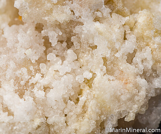 Rare colorless Grossular crystals from a small find made in 2018 near Georgetown. The specimens were found in an approximately 3 meter long lens in Serpentine that was completely mined out. These have been analyzed as nearly pure end member Grossular with the crystals occurring in bunches or on massive white Grossular. 1-2mm crystals. Grossular from this find shows varying degrees of pink/orange fluorescence under long wave ultraviolet light. This deposit is featured in the November-December 2019 Mineralogical Record magazine.