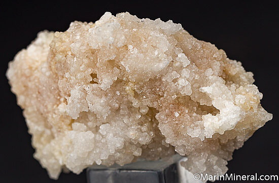 Rare colorless Grossular crystals from a small find made in 2018 near Georgetown. The specimens were found in an approximately 3 meter long lens in Serpentine that was completely mined out. These have been analyzed as nearly pure end member Grossular with the crystals occurring in bunches or on massive white Grossular. 1-2mm crystals. Grossular from this find shows varying degrees of pink/orange fluorescence under long wave ultraviolet light. This deposit is featured in the November-December 2019 Mineralogical Record magazine.
