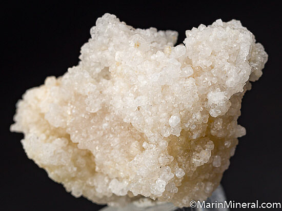 Rare colorless Grossular crystals from a small find made in 2018 near Georgetown. The specimens were found in an approximately 3 meter long lens in Serpentine that was completely mined out. These have been analyzed as nearly pure end member Grossular with the crystals occurring in bunches or on massive white Grossular. 1-2mm crystals. Grossular from this find shows varying degrees of pink/orange fluorescence under long wave ultraviolet light. This deposit is featured in the November-December 2019 Mineralogical Record magazine.