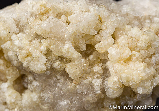 Rare colorless Grossular crystals from a small find made in 2018 near Georgetown. The specimens were found in an approximately 3 meter long lens in Serpentine that was completely mined out. These have been analyzed as nearly pure end member Grossular with the crystals occurring in bunches or on massive white Grossular. 1-2mm crystals. Grossular from this find shows varying degrees of pink/orange fluorescence under long wave ultraviolet light. This deposit is featured in the November-December 2019 Mineralogical Record magazine.