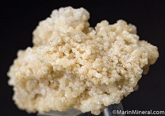 Rare colorless Grossular crystals from a small find made in 2018 near Georgetown. The specimens were found in an approximately 3 meter long lens in Serpentine that was completely mined out. These have been analyzed as nearly pure end member Grossular with the crystals occurring in bunches or on massive white Grossular. 1-2mm crystals. Grossular from this find shows varying degrees of pink/orange fluorescence under long wave ultraviolet light. This deposit is featured in the November-December 2019 Mineralogical Record magazine.