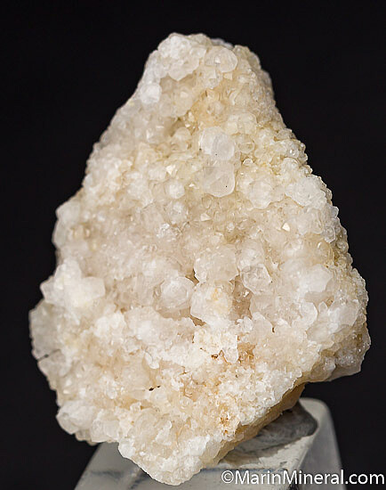 Rare colorless Grossular crystals from a small find made in 2018 near Georgetown. The specimens were found in an approximately 3 meter long lens in Serpentine that was completely mined out. These have been analyzed as nearly pure end member Grossular with the crystals occurring in bunches or on massive white Grossular. 1-2mm crystals. Grossular from this find shows varying degrees of pink/orange fluorescence under long wave ultraviolet light. This deposit is featured in the November-December 2019 Mineralogical Record magazine.