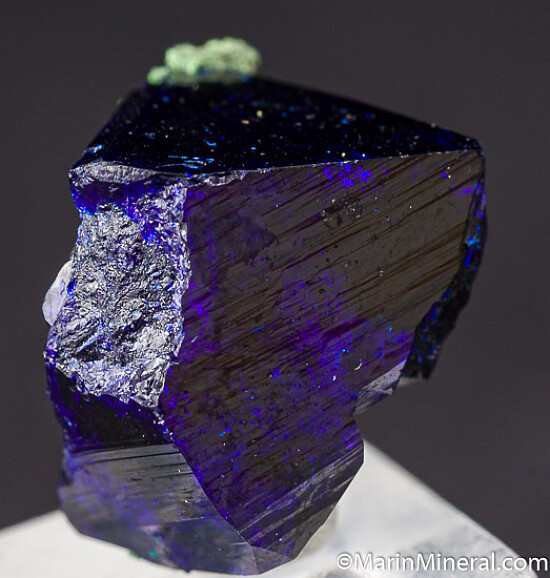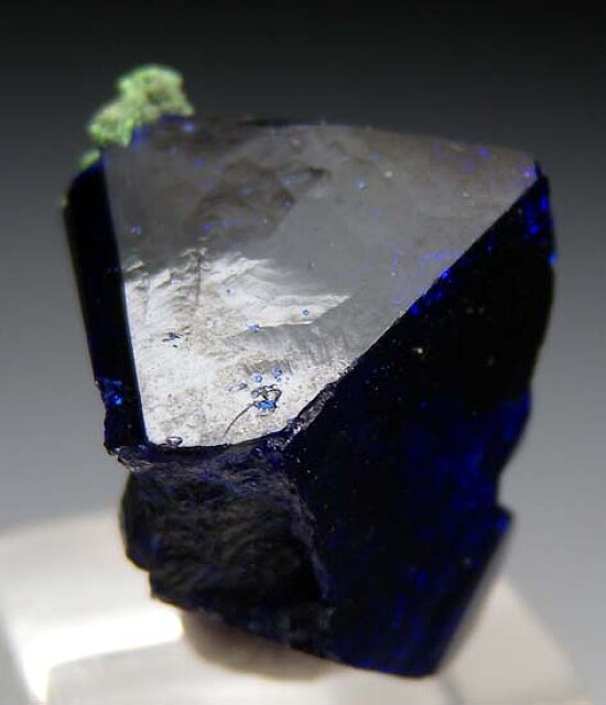 Representative Azurite crystal of the blocky habit from Tsumeb. It has big, flat lustrous faces but also a number of contacts. The best feature is