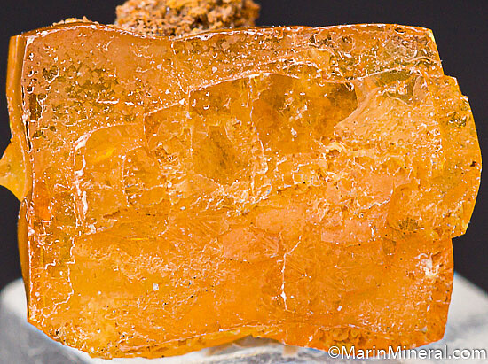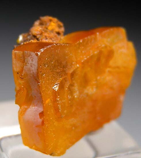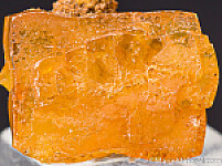 Translucent orange single crystal. Tabular habit, complete all round. There is a small nick to the lower left corner, otherwise undamaged.