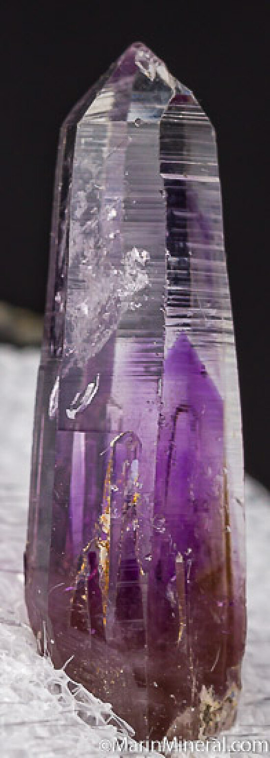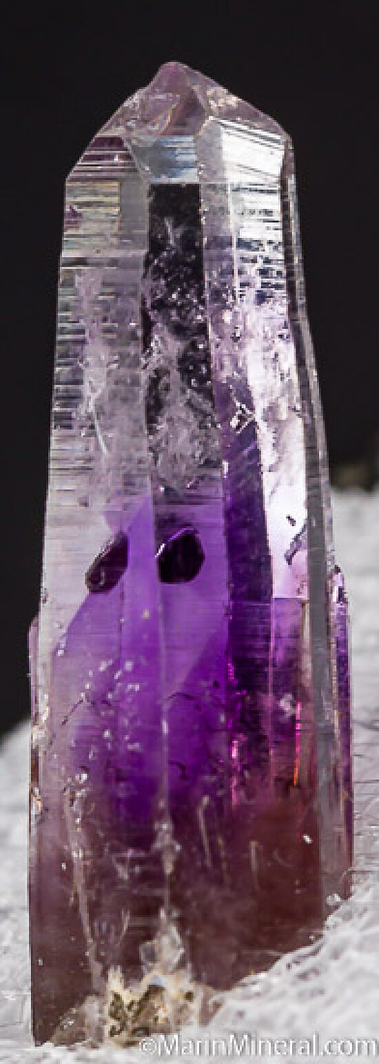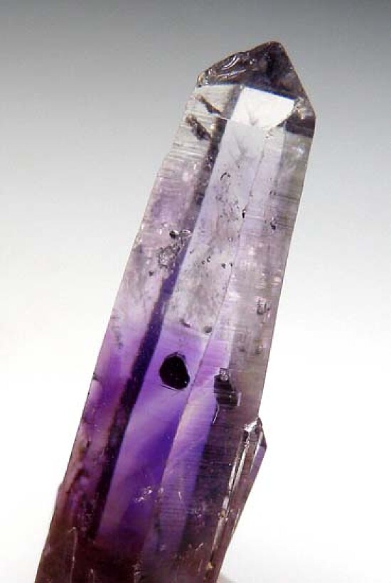 Glassy transparent Quarts with amethyst phantoms from recent production. Good color, glassy luster, better than photos. Guererro Amethyst is some of the highest quality, expensive Amethyst in the world. This is a high quality thumbnail sized example.