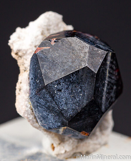 Complete and undamaged 1cm Spessartine crystal on matrix. Old label indicates this was found in 1961.