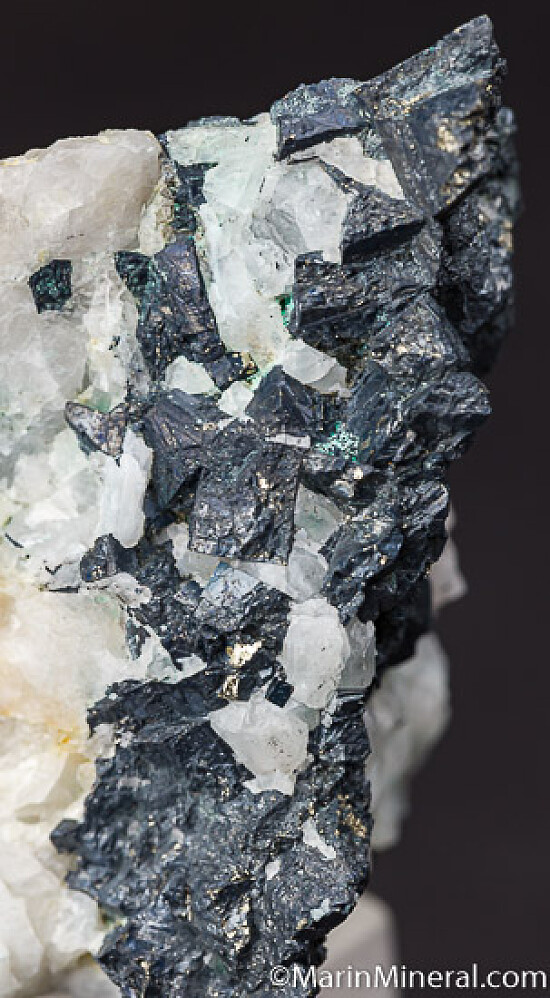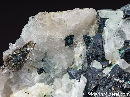 Digenite in Quartz from the famous Butte mining district in Montana. There are broken surfaces but also good crystallized surfaces.