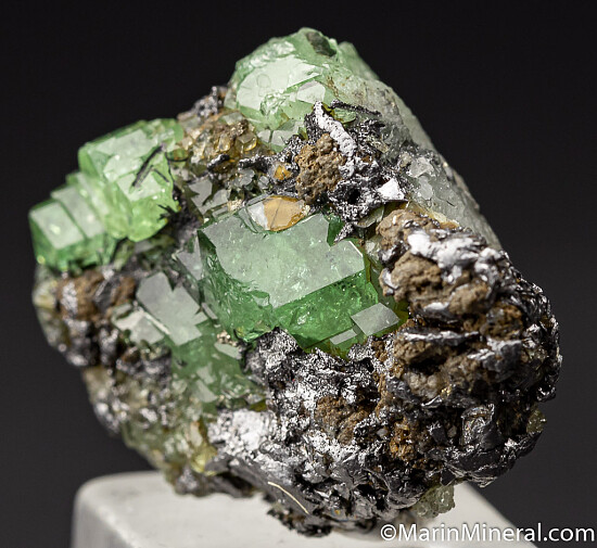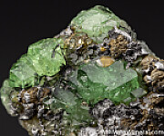 Glassy and lustrous green Tsavorite crystals to 7mm on a Graphite matrix. Valued at $150.