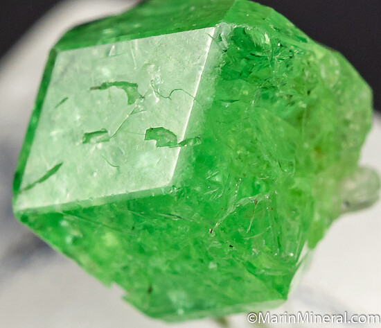 Well formed single Tsavorite crystal with good color. Some indentations from other crystals but undamaged.