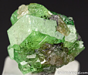 Cluster of deep green Grossular var. Tsavorite crystals. Crystallized all around with just a couple contacted areas. Main crystal is 1.2cm in size and good quality. Valued at $150.