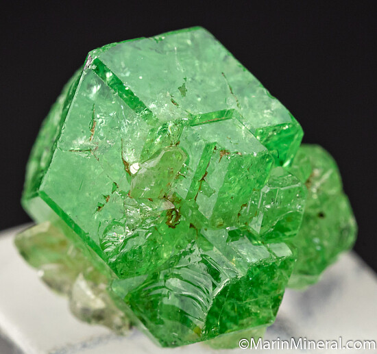Cluster of translucent to transparent green Tsavorite crystals with Diopside. Slight chipping otherwise well crystallized all around with good luster and associated small Diopside crystals.