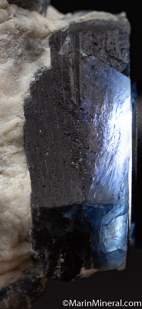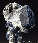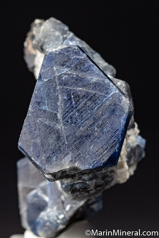 Cluster of deep blue Sapphire crystals, translucent along edges. Main crystal is tabular and 2.1cm wide.