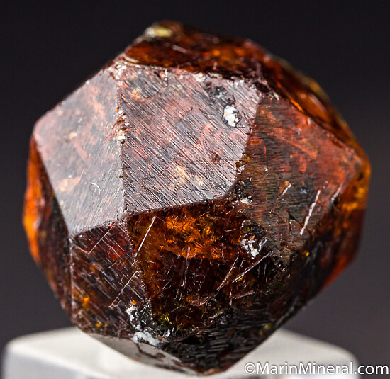 Complete orange Spessartine crystal from old finds in Tanzania. These were mostly found as partial or damaged crystals with perfect complete crystals such as this much less common. Good form with no significant damage - I found two trivial nicks on the whole crystal. There are black Braunite inclusions in this one, but also lots of transparent orange zones, in fact the whole thing is transparent aside from the inclusions (many are just translucent).