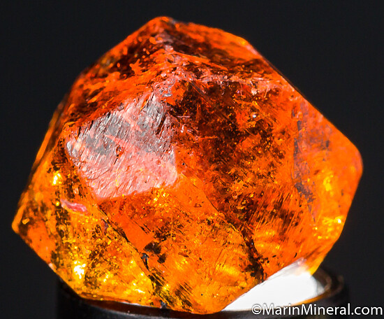 'Citrus' orange Spessartine crystal from old finds in Tanzania. This is a wonderful crystal, undamaged with good form however it was intergrown with another (now gone)