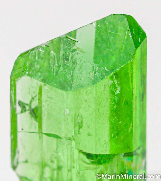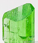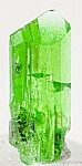 Sharp single Diopside crystal with excellent luster, transparency. Better than average color for such a transparent crystal, and undamaged, complete all around. Ex. Jon Sigerman.