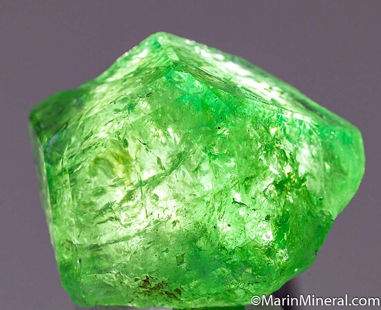 Large single green Grossular var. Tsavorite with bevelled edges and high luster. Contacted at the bottom and all top faces undamaged.