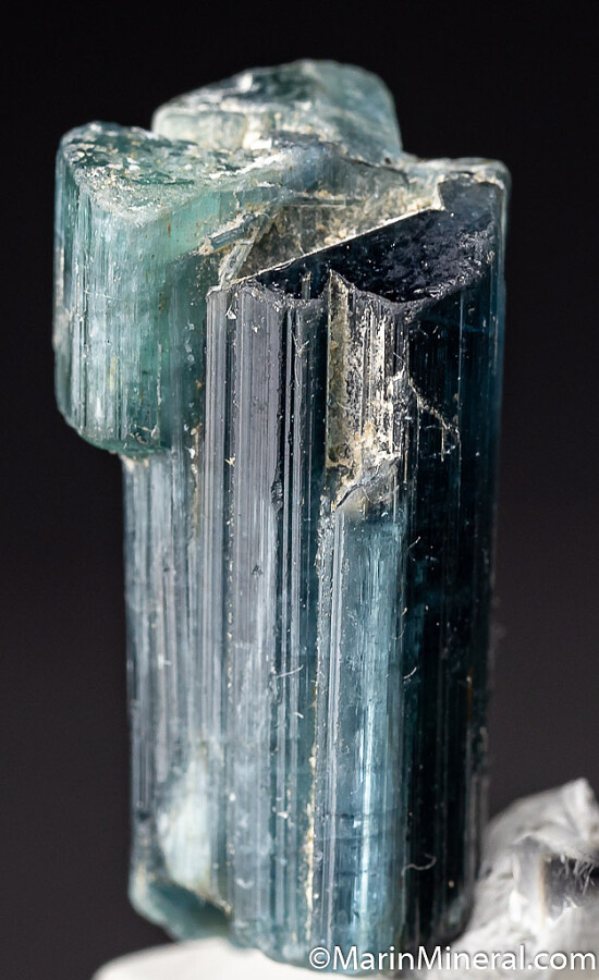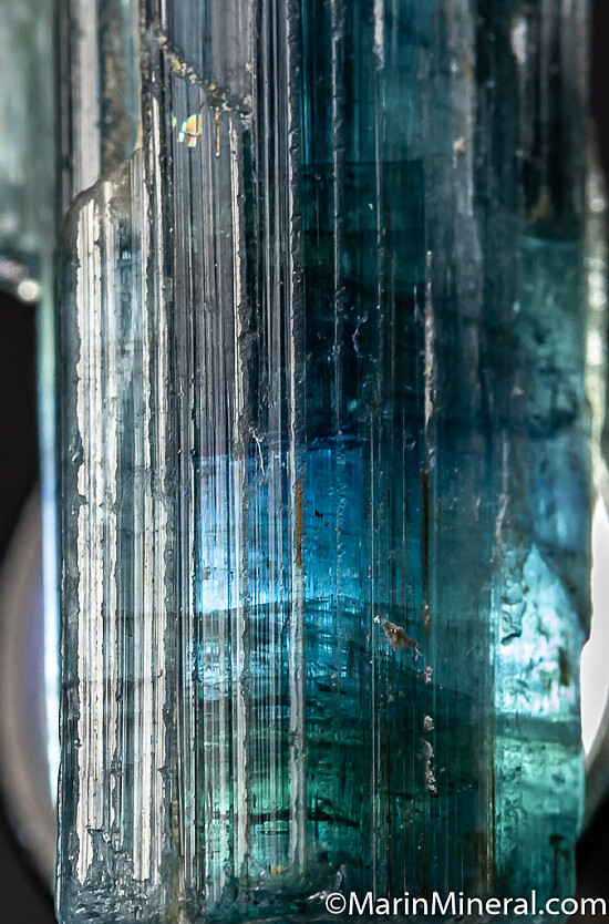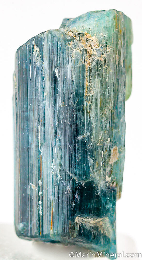 Single partially terminated crystals of translucent blue Tourmaline var. Indicolite. Weighs 23 carats.