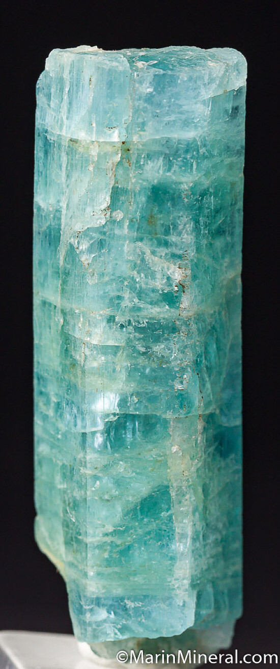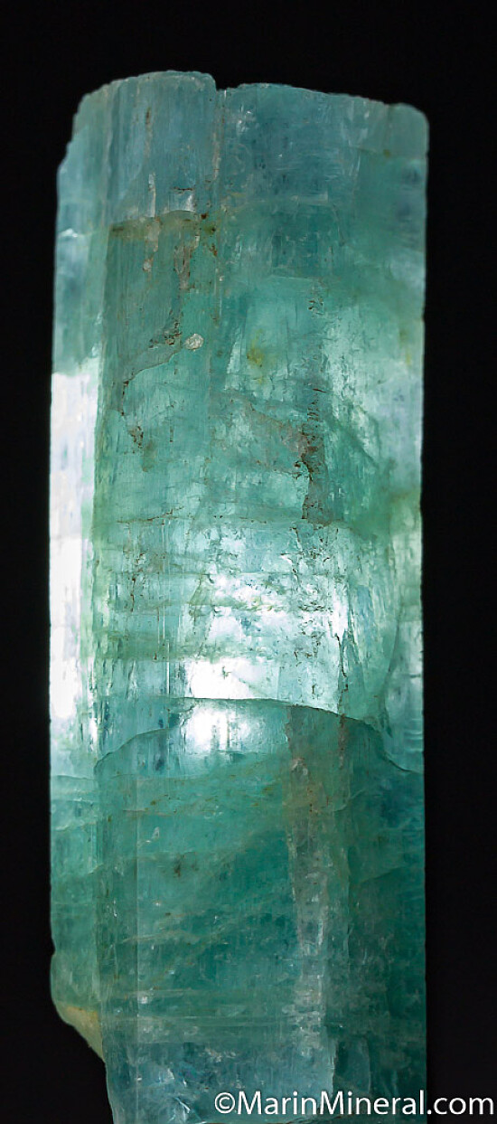Sky blue, non-terminated crystal of Aquamarine mined just weeks ago in Zambia. Uniform, pleasant coloration with small gem areas and grooove fron another crystal running up the backside. Weighs 21.45 grams.
