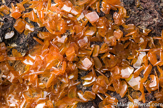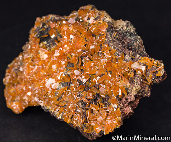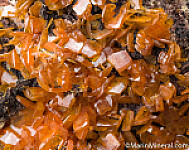 Specimen with large front display face coated by butterscotch colored Wulfenite crystals.