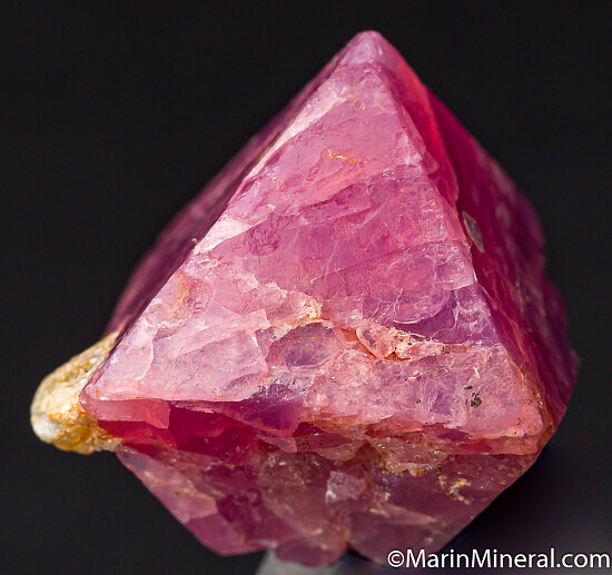 Large single pink Spinel crystal from recent finds in Tanzania. Good color and translucent. There is typical natural dimpled surfaces and indentations, but it is undamaged and complete. Good sized crystal valued at $250.