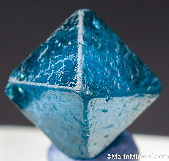 Translucent blue spinel crystal, the largest and most perfect of the lot. Slight edge/tip damage, but overall very good. These were first discovered in 2001 and are found mostly of industrial quality. Though they don't get very large, the color is spectacular. It's on the large size range and has very good color. Studies have shown these to be very high in Zinc and could be labelled as Gahnite.