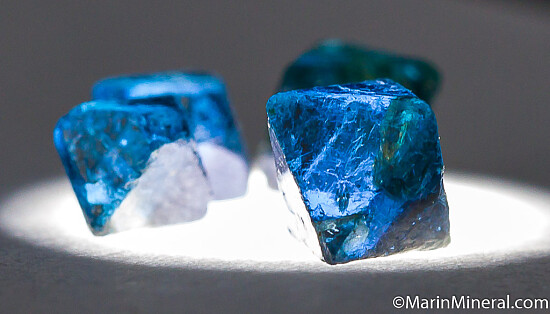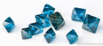 Parcel of 10 small translucent blue spinel crystals, all selected for completeness and good form. These were first discovered in 2001 and are found mostly of industrial quality. Though they don't get very large, the color is spectacular. Studies have shown these to be very high in Zinc and could be labelled as Gahnite.