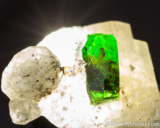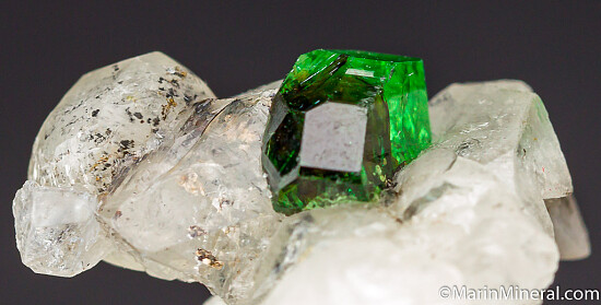 High quality, glassy 8mm Chrome Tourmaline (Dravite) on matrix. Small specimen, but a real jewel of a Tourmaline. Undamaged crystal that is transparent with great bright green color.