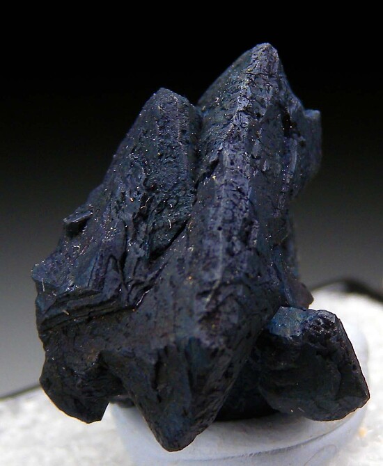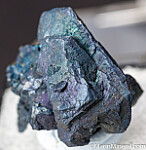 Cluster of well formed Chalcocite crystals with a dark blue, irridescent color. Main crystal is 2.2cm in size.