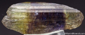 Double-terminated bi-colored Tanzanite crystal, blue/purple with yellow tips on each end. Clean and undamaged.