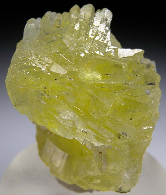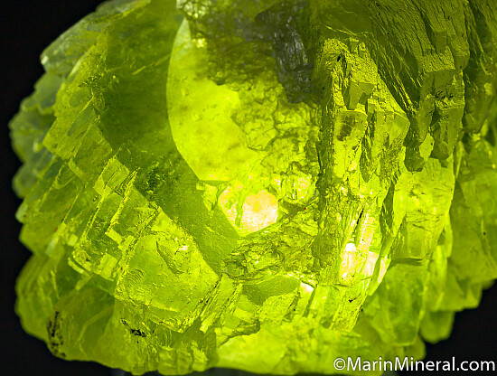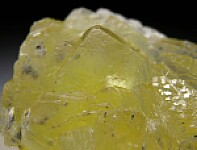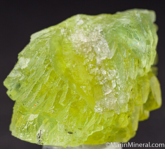 Translucent lemon yellow Prehnite crystals from teh Merelani Tanzanite mines. Prehnite is fairly common worldwide, but good crystals are not. For crystals, the Jeffrey Mine in Canada and those like these from Tanzania are the best. This one is solid tranluscent Prehnite with good crystals, and has a couple smooth indentations from where Tanzanite or Calcite crystals were formerly located.