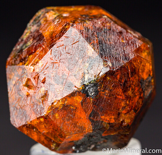 Complete 'citrus' orange Spessartine crystal from old finds in Tanzania. These were mostly found as partial or damaged crystals with complete crystals such as this much less common. Equant form with no significant damage - I found a couple insignificant small edge chips. Translucent with great color and importantly, this has gem value inside. It appears a little dark from the surface, but backlighting shows transparent areas within. Weighs 40.56 grams (about 203 carats).