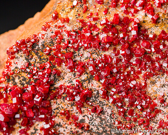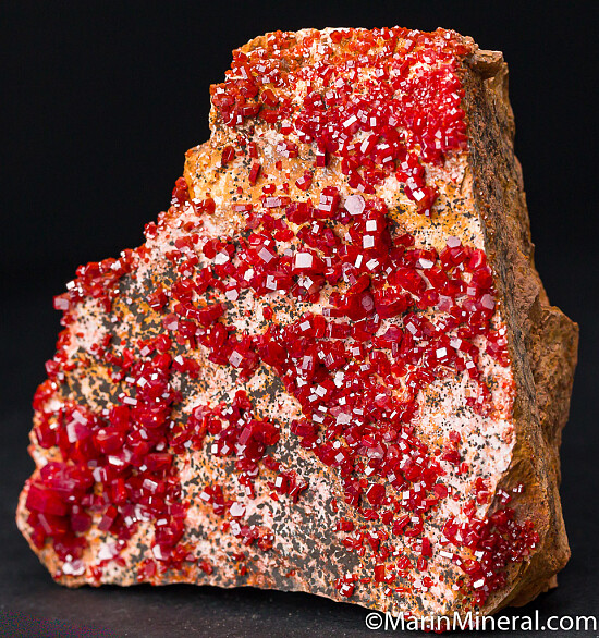 Large specimen of bright red Vanandinite crystals. The crystals aren't huge (largest 8mm), but there's tons of them well distributed across the front display face