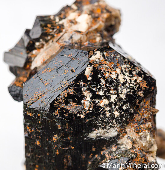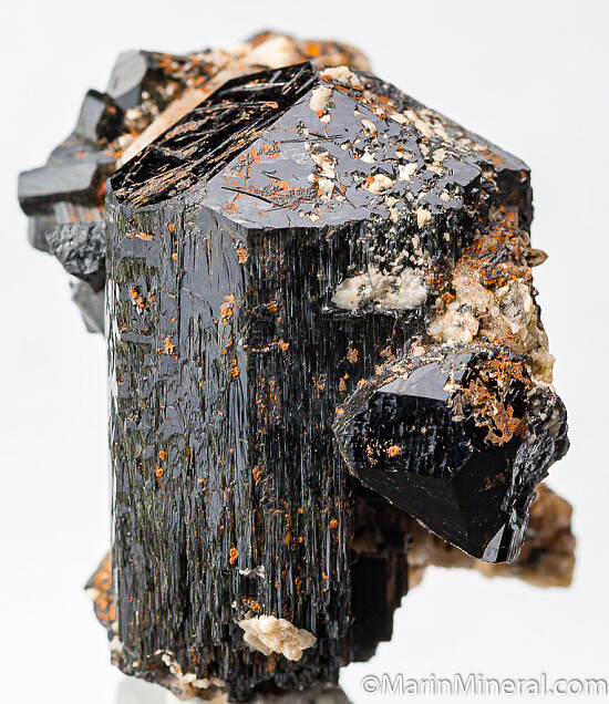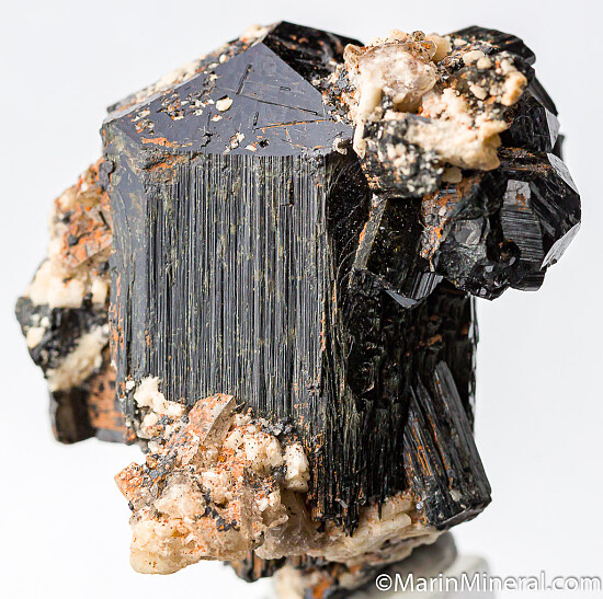 Large, well terminated schorl with good luster with attached Feldspar and smaller schorl crystals. A good specimen that could be improved greatly with some cleaning.