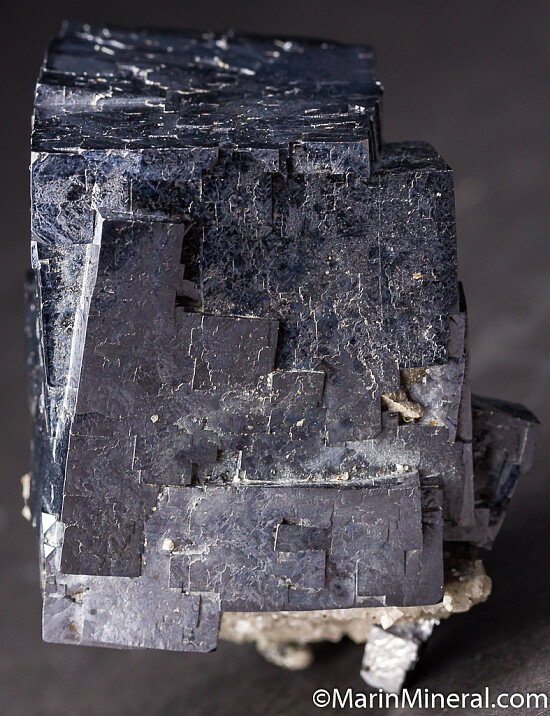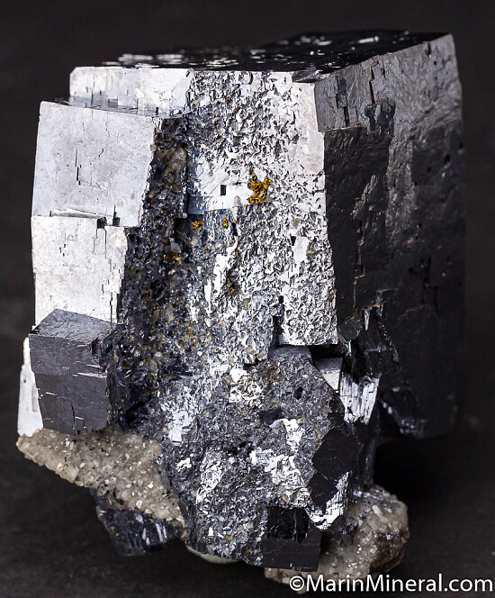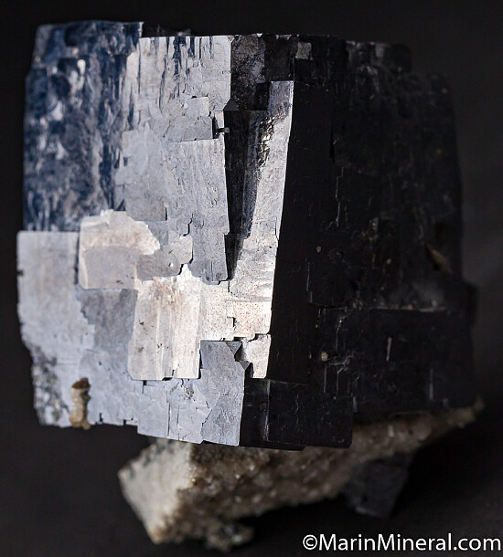 Single, somewhat rectangular crystal of Galena sitting upright on a small amount of matrix. Complete all around and more aesthetic than most.