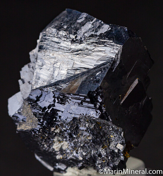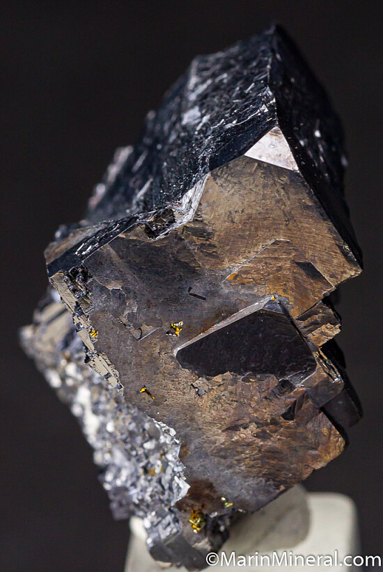 Bright, mirror lustrous Galena crystal from Broken Hill, Australia. Comew with a couple old labels, one of which indicates it was purchased from Dan Weinrich in 1998. Good locality specimen, shiny and bright.