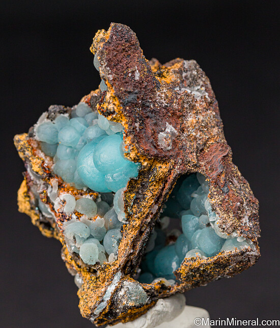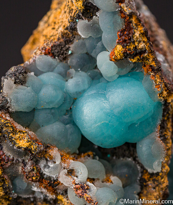 Blue botryoidal Smithsonite in multiple vugs. Old specimes that comes with a few old labels including a Jean Behier label that notes that he acquired it from the Letellier collection.