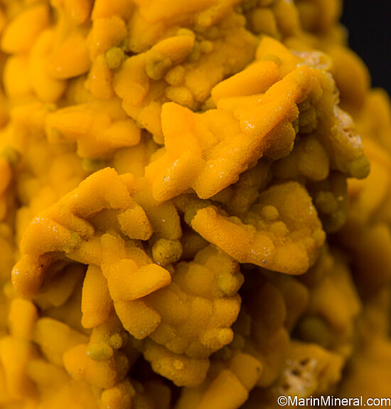 Bright yellow crystals of Smithsonite that have replaced Dolomite crystals. Great coverage of crystals that wrap around both sides. Comes with an old Kristalle label and another from the Mitchell Gunnell collection indicating that Gunnell acquired it in 1961 from M.J. Zimmerman.