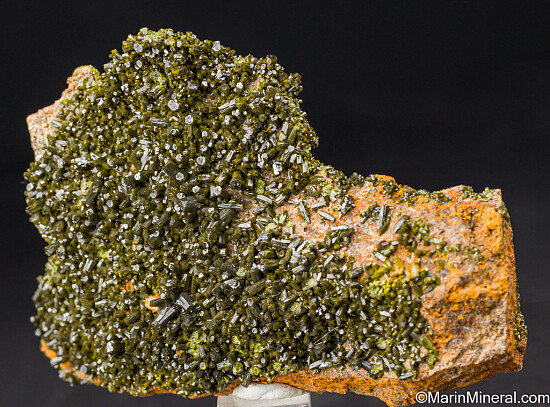 Thin matrix covered on the front side by green Pyromorphite. A USA classic from a historic old Lead and Silver mine. In excellent condition, espcially considering this piece could date back to the 1800s. Comes with two old labels.