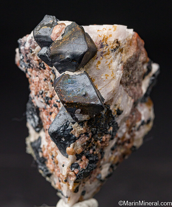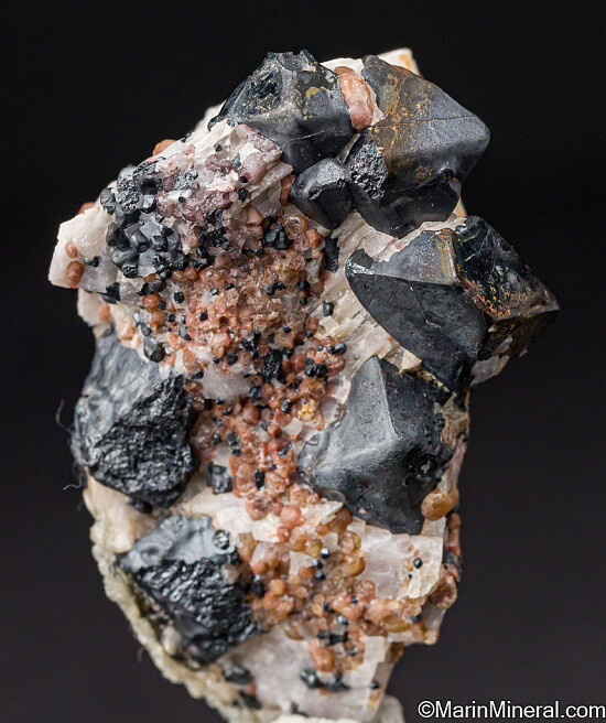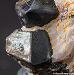 Octahedral crystals of Franklinite to 1.7cm on matrix. There are four good complete crystals exposed, with other partial crystals embedded in the matrix.
