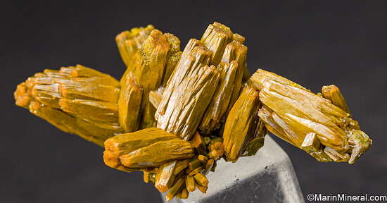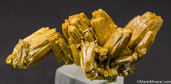 Mustard yellow to green crystals of Pyromorphite. Complete all around and pristine and can be displayed from many angles. European classic from a mine that closed about 40 years ago (1981).
