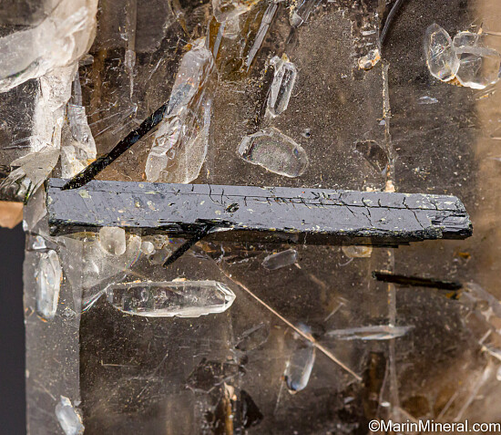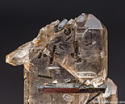 Double-terminated, tabular smokey Quartz crystal with attached and included Aegerine crystals. Minor chipping present but it's in overall great condition. Ex. Chuck Trantham collection.