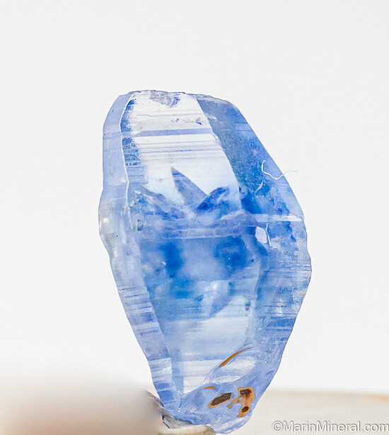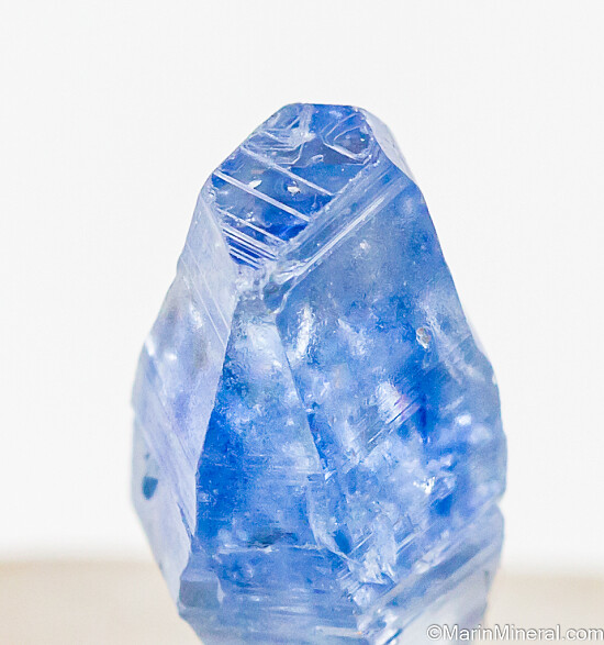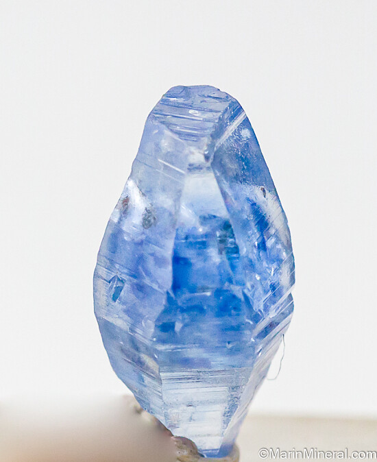 Double-terminated gemmy blue Sapphire crystal from Sri Lanka. Complete and undamaged with sharp edges (not alot of wear).