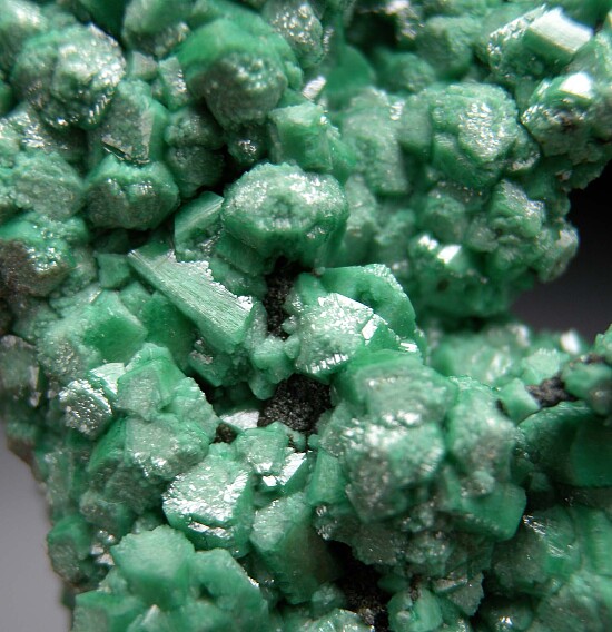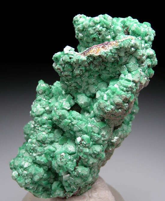 Good sized specimen covered on all sides by green Zincolivenite crystals (formerly known as Cuprian Adamite). Hundreds of crystals on this this one, the richest example I've ever had. Individual crystals reach 6mm and there are also fingers of dark green Mottramite in various areas. An amazing specimen.