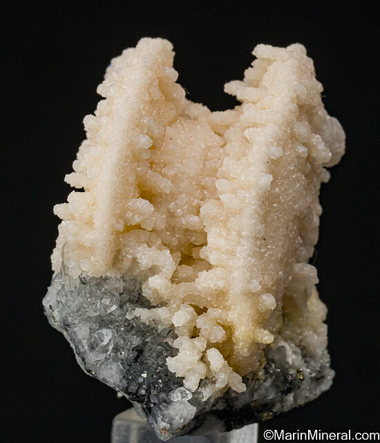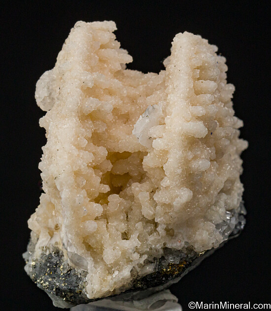 White 'poker chip' style Calcite crystals that sit on edge on a Quartz crystal and Pyrite matrix. The crystals are complete all around and the parallel formation makes a striking specimen. Ex. Chuck Trantham collection. Valued at $150.
