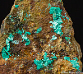 Rich coverage of platy blue/green crystals of Chalcophyllite on matrix. Specimens of Chalcophyllite are some of the most sought after from this mine.